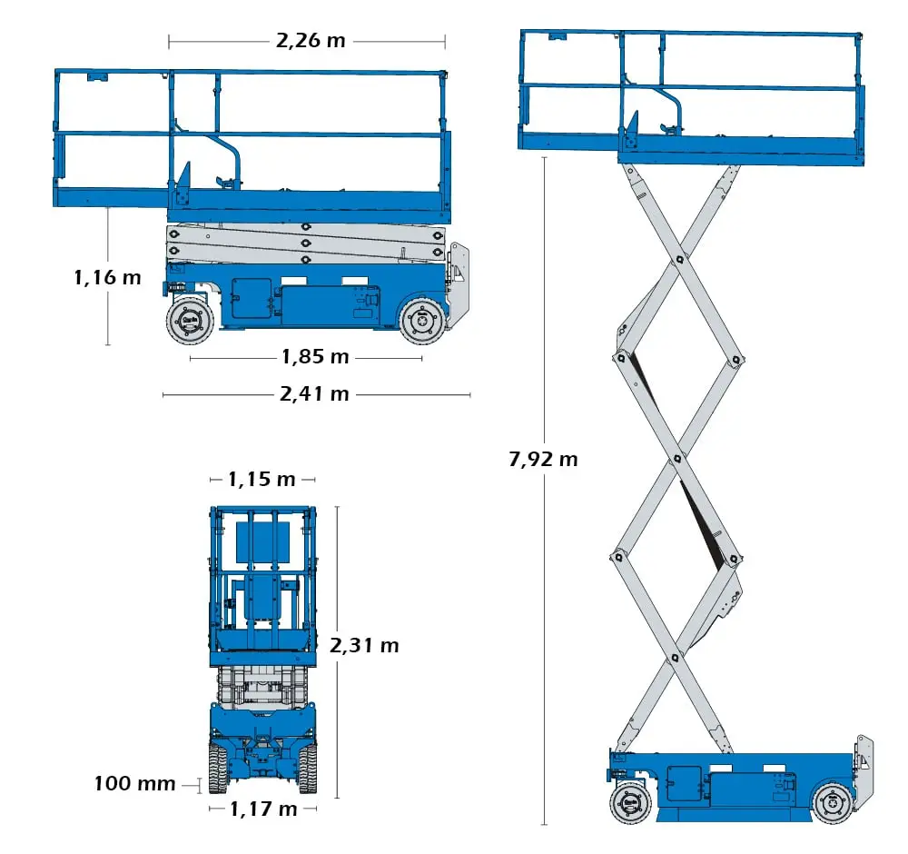 Genie GS2646 E pladesakselift er velegnet til arbejde indendørs og udendørs på faste, plane overflader, hvor pladsen er begrænset. E-Drive-systemet tilbyder uovertruffen effektivitet og driftstid, hvor der kræves en betydelig mængde kørsel.